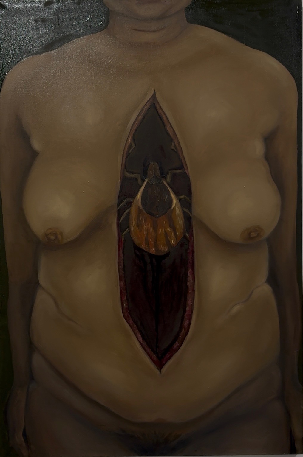 Underneath skin (2025) , oil on canvas, 18 in by 36 in